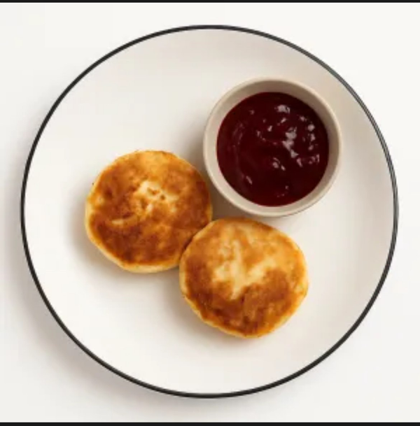 <span data-description-text>Два сырника с творогом и изюмом — нежные, румяные и ароматные. Подаются с добавкой на...</span>